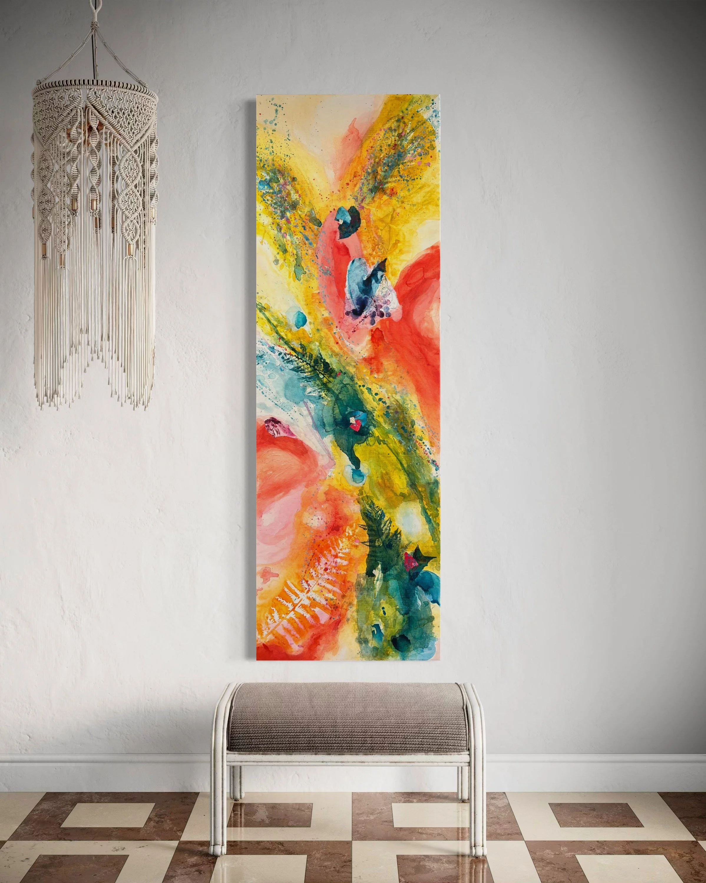 A rich play of colors that captures the constant change from turbulence to calm and fills the room with powerful and harmonious life energy.