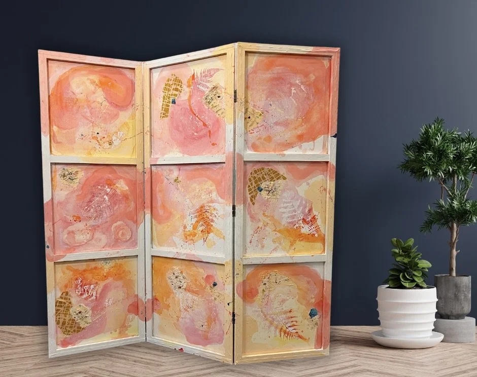 This work of art unfolds its versatility not only as a canvas, but also as a stylish room divider that structures and connects rooms with gentle elegance. The front and back tell of natural growth, inspired by love as a way of life.