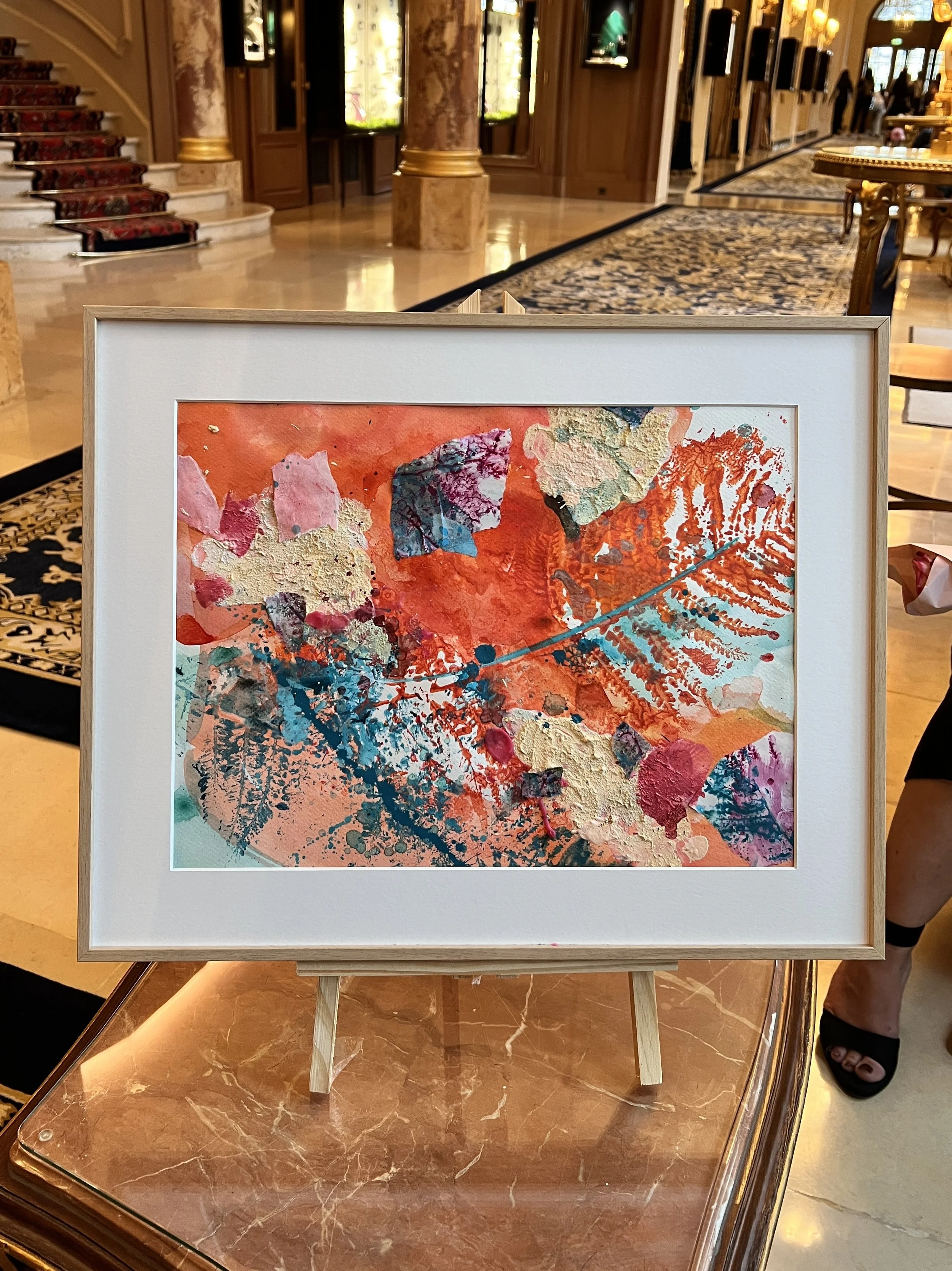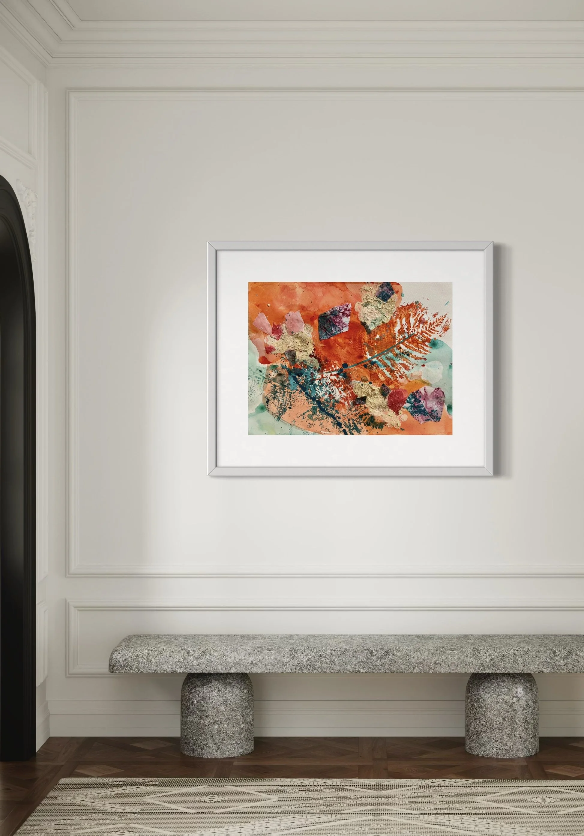 Like a hidden jewel that only shines in the light of self-knowledge, "Aladdin's Magic Lamp" unfolds in an interplay of vibrant colors and radiant textures. Delicate watercolor tones merge with Japanese ink and powerful acrylic to create a kaleidoscope that reveals the secret of inner richness.